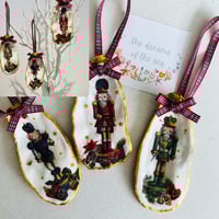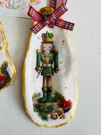 Trio of decorated decoupaged oyster shells Nutcracker design approx 9x6cm (sizes may vary due to natural product)
